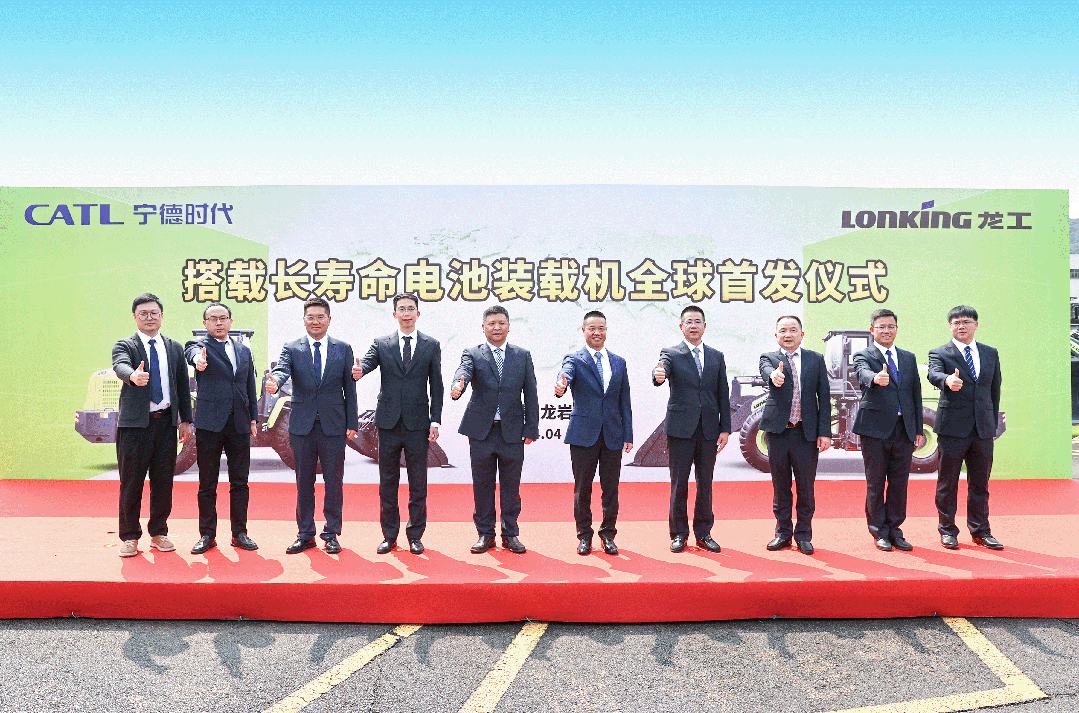 2024年4月28日,中國龍工攜手寧德時代在龍工龍巖基地舉行搭載長壽命電池裝載機全球首發儀式。這是繼今年2月中國龍工與寧德時代簽署戰略合作協議掀起裝載機行業電動化熱潮后,雙方攜手合作的又一重大舉措。寧德時代商用車執行總裁來永杰先生,中國龍工執行董事、副總裁鄭可文先生等領導參加全球首發儀式。
